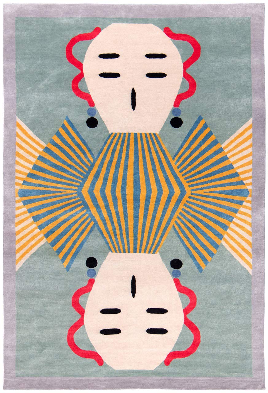 A significant source of inspiration was the Italian Futurist movement of the early 20th century. Mendini shared its utopian ambition to ‘reconstruct the universe’ by fusing art and everyday life. The exhibition highlights this connection through two bold works in fabric dedicated to Futurist artist Fortunato Depero, as well as a series of “mechanical masks” paying tribute to figures such as F. T. Marinetti, Giacomo Balla, Umberto Boccioni, Gino Severini and Antonio Sant’Elia.