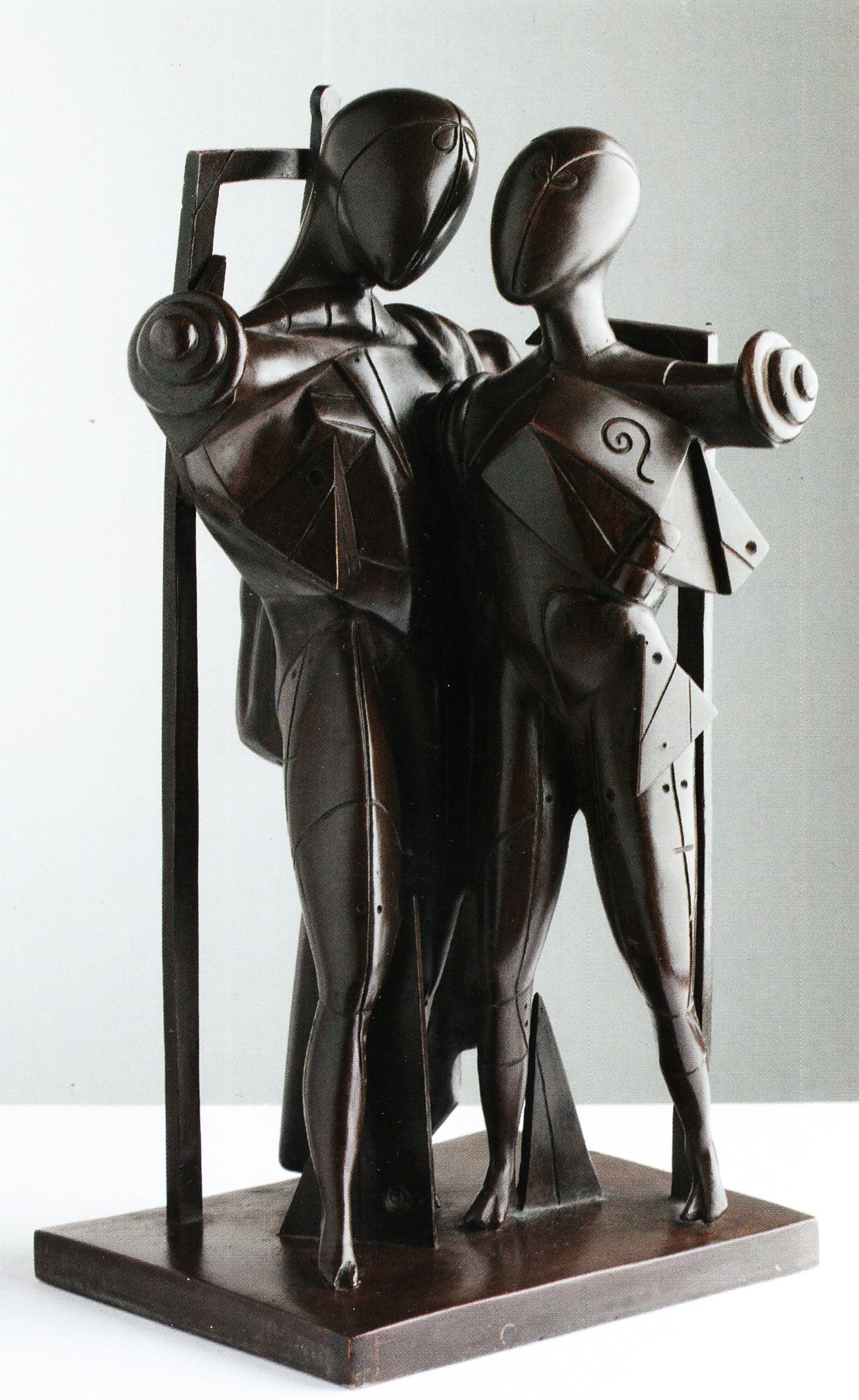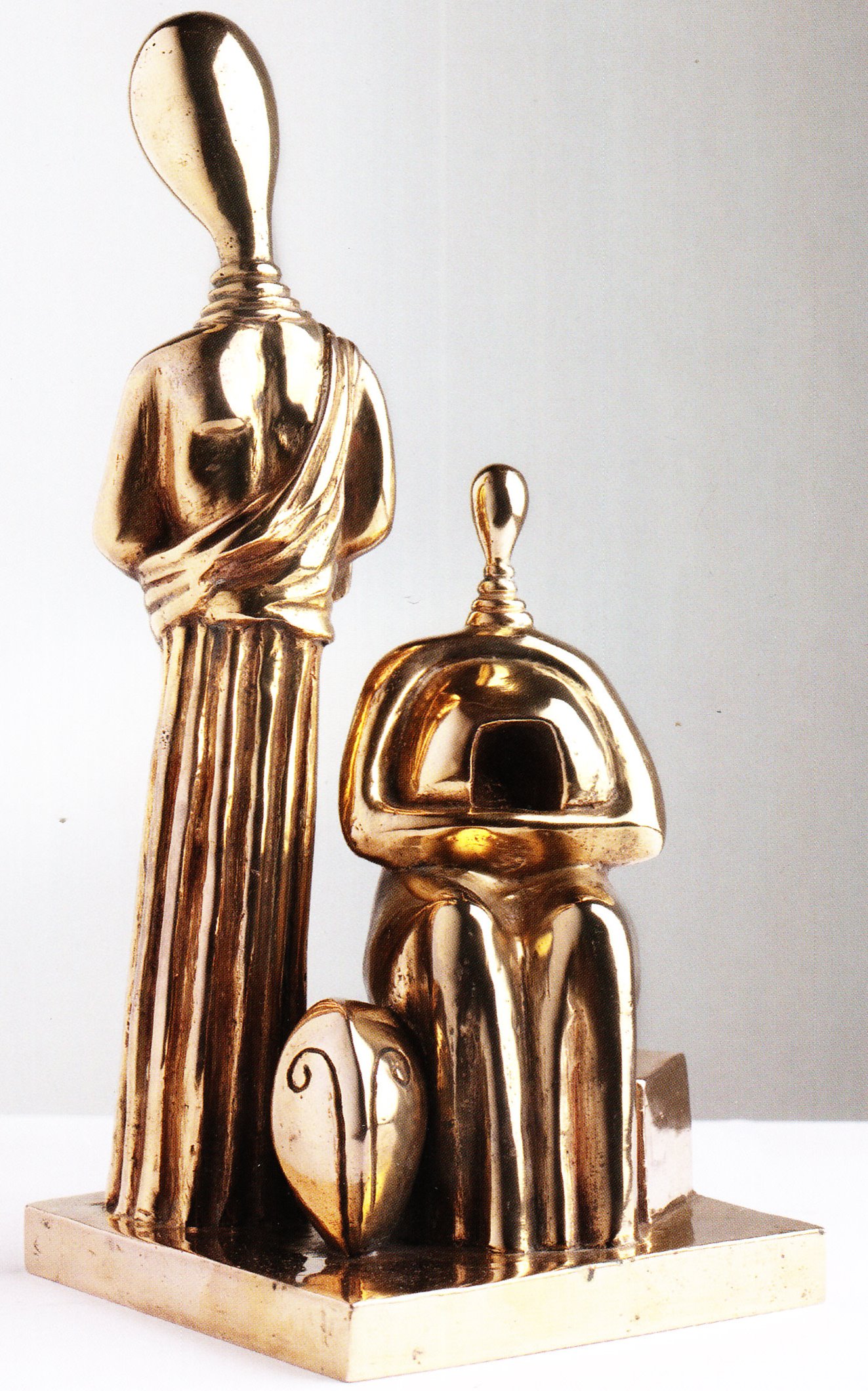 Although best known as a painter, de Chirico was fascinated by sculpture throughout his career, believing it to possess a mysterious spectral quality. Statues set in deserted city squares were a key element of his iconography from 1909 onward, and toward the end of the 1930s the artist began to experiment with sculpture, creating terracotta versions of the enigmatic figures that had long populated his paintings. In these works, which reflect de Chirico’s enduring fascination with classical subjects, characters from mythology such as Hector and Andromache take on the forms of tailors’ dummies or intricately constructed automatons. During the 1960s he produced bronze versions of such works, and subsequently began to create multiples, often with highly-polished gold or silver finishes. The exhibition focused on these late pieces in particular and also included a number of drawings and paintings on related themes. Such was the success of his work in this field that in 1972 de Chirico was awarded the prestigious Ibico Reggino Prize for Sculpture, alongside Henry Moore.