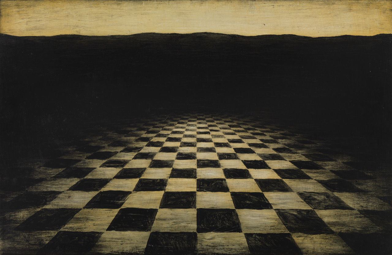 In his dreamlike paintings he uses a limited palette - from pale yellow to brown to black. Strange animals or lonely human figures are intertwined with evocative, sometimes impossible landscapes.