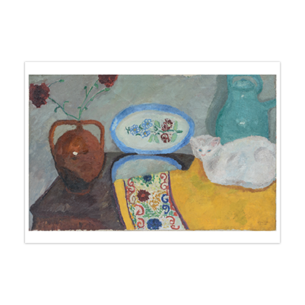 Vase of Flowers, c.1916, oil on board, 35 x 27 cm; Teapot on a Rug, 1914, oil on canvas panel, 30 x 40 cm; Still Life with Cat, 1918, oil on canvas, 60 x 95 cm; Jug and Little Bird, c.1918-30, oil on pressed cardboard, 68 x 48 cm; Neapolitan Still Life, c.1954–56, oil on Masonite, 78 x 51.5 cm; Vase of Flowers and Letters, c.1950, oil on board, 38 x 46 cm. All works by Pasquarosa, courtesy Archivio Nino e Pasquarosa Bertoletti, Rome