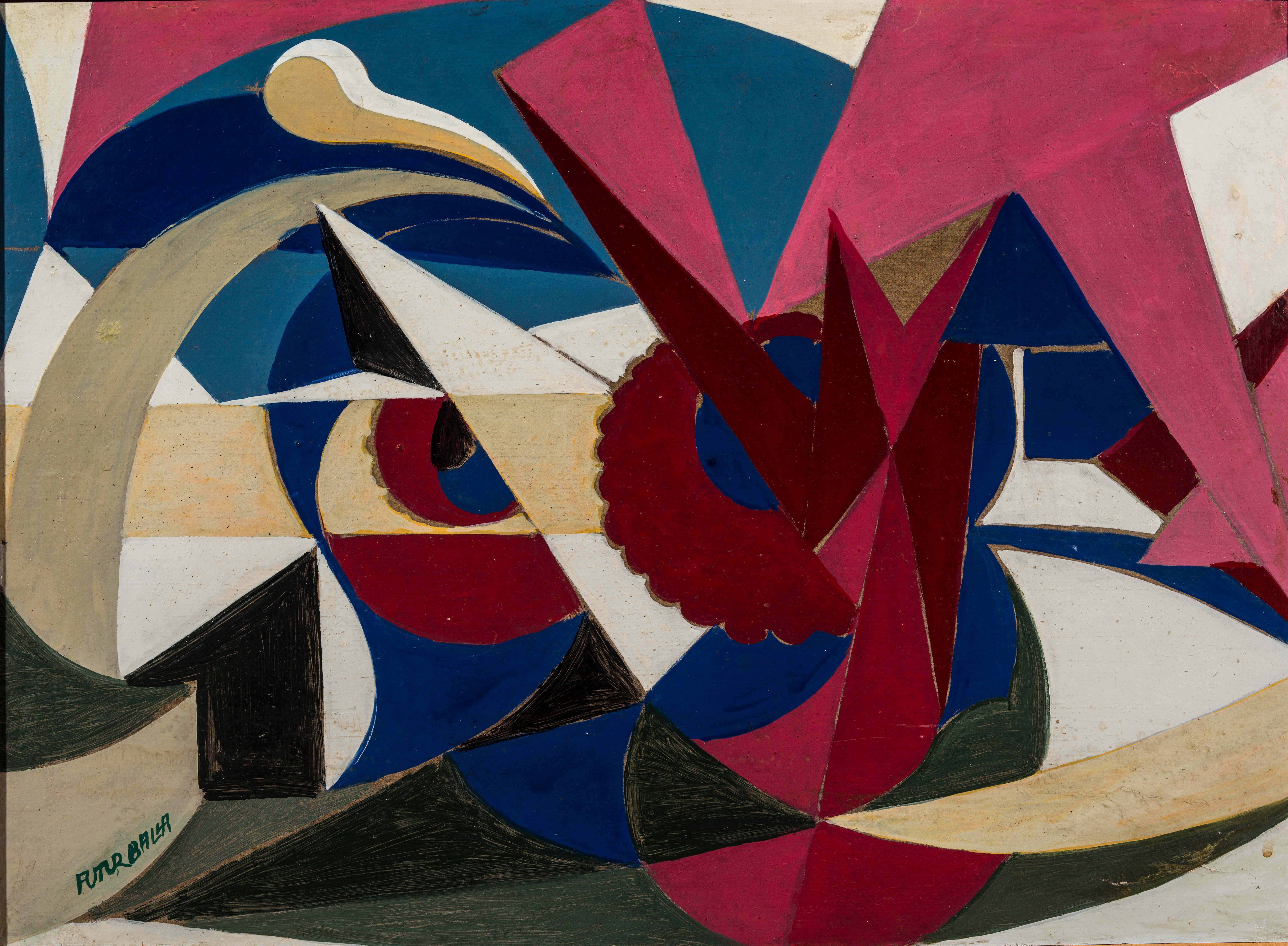 Initially, Balla’s approach to the subject was based on the photographic research of Eadweard Muybridge and Etienne-Jules Marey, but he was the first of the early Futurist painters to develop an entirely abstract style. Balla was also the only member of this initial group of artists who continued to identify with Marinetti’s movement during the inter-war years. In 1915 he issued the manifesto ‘Futurist Reconstruction of the Universe’ with Fortunato Depero, and was influential in promoting the extension of Futurist principles to all aspects of life.